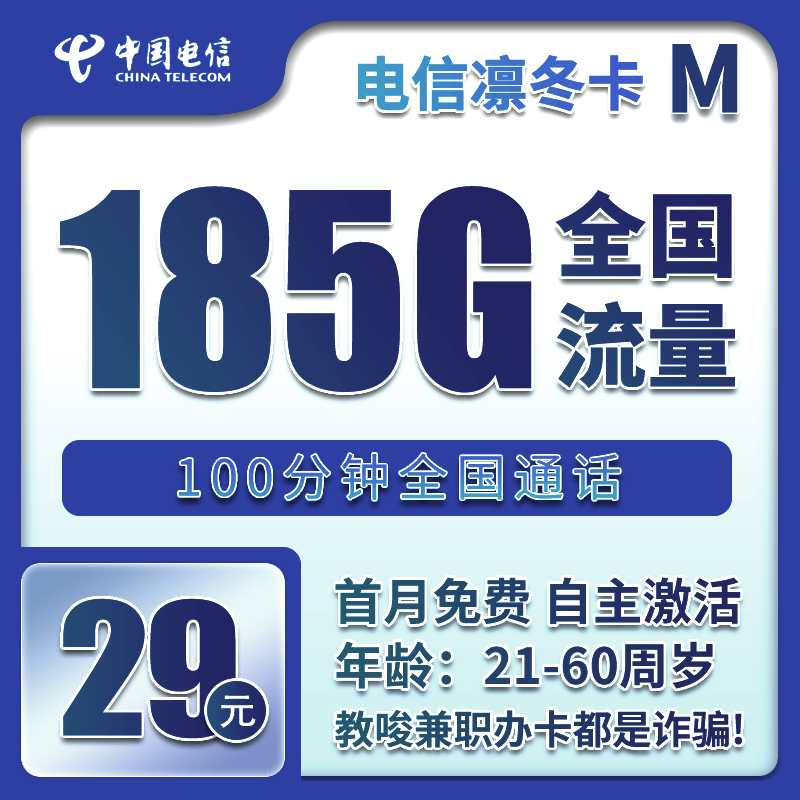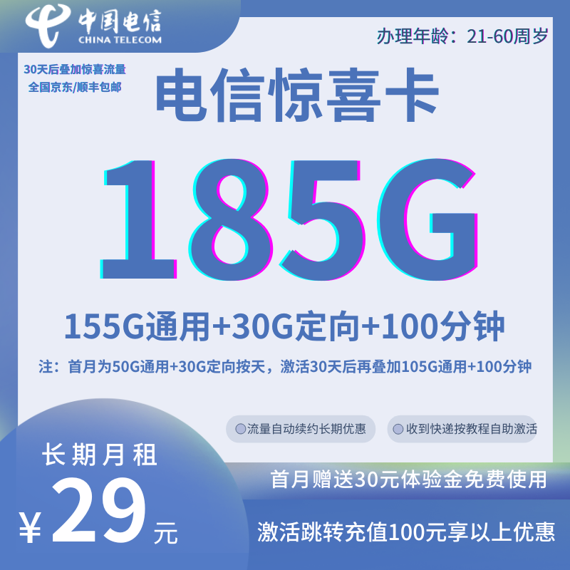 29元185G全国流量+100分钟(自助激活,长期套餐)